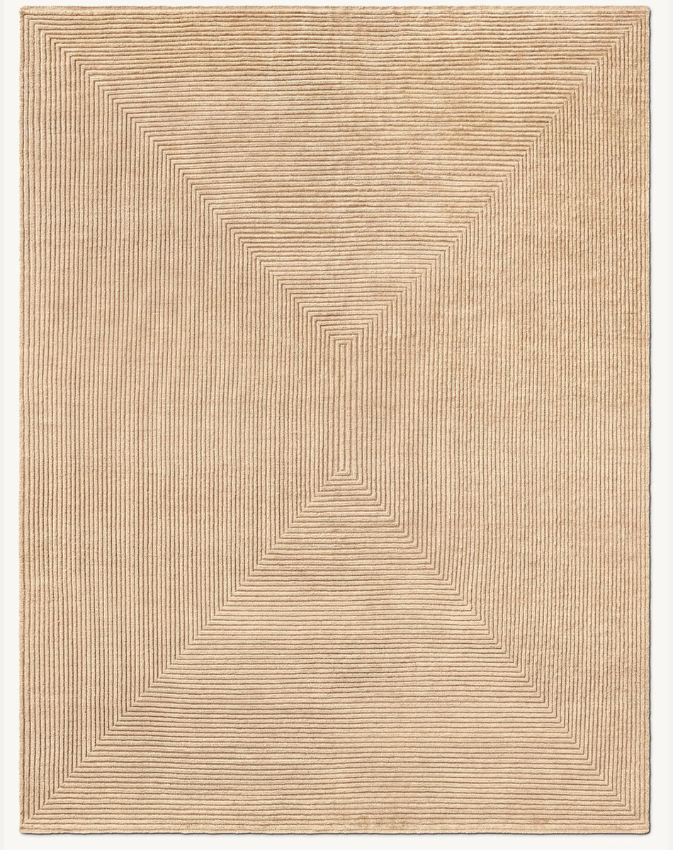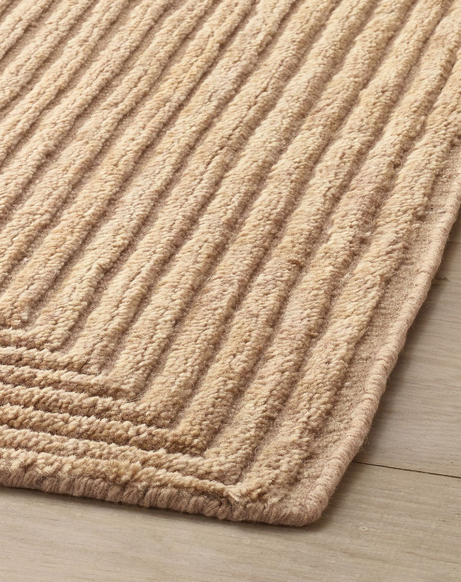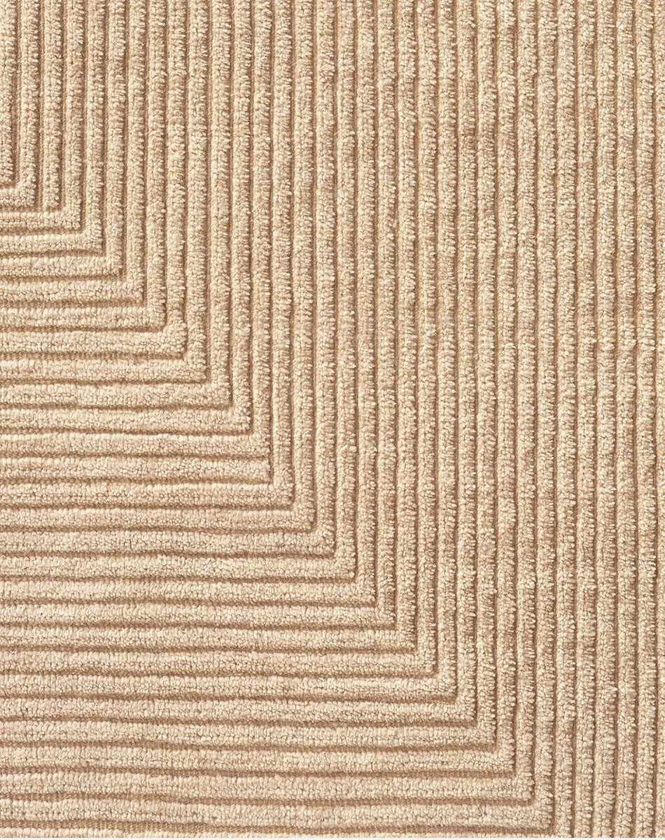 Lush shearing and low loops define our rug's offset angles, creating an interplay of line and texture. Spun from wool and viscose, the richly shaded yarns impart luxuriant softness and low sheen.