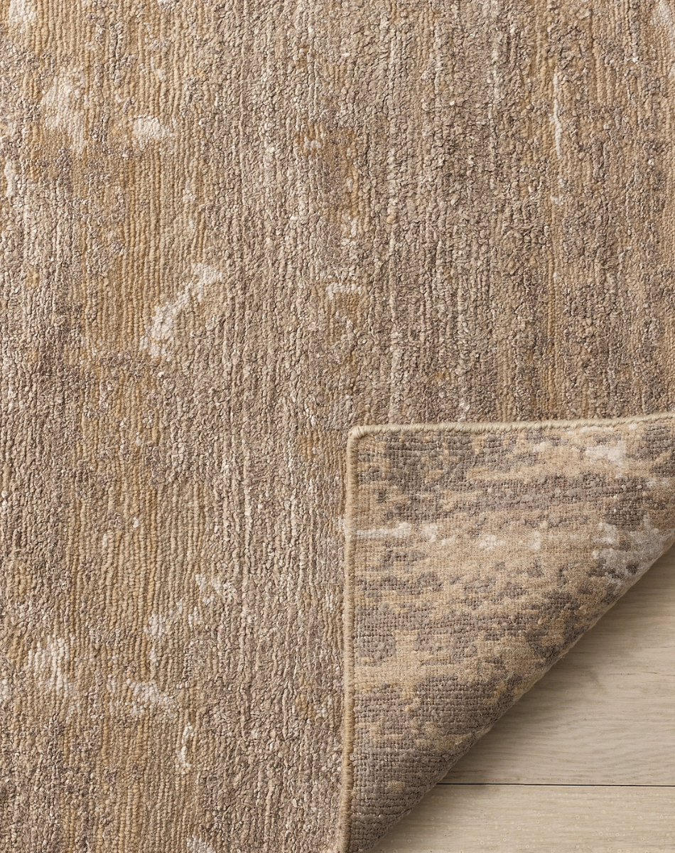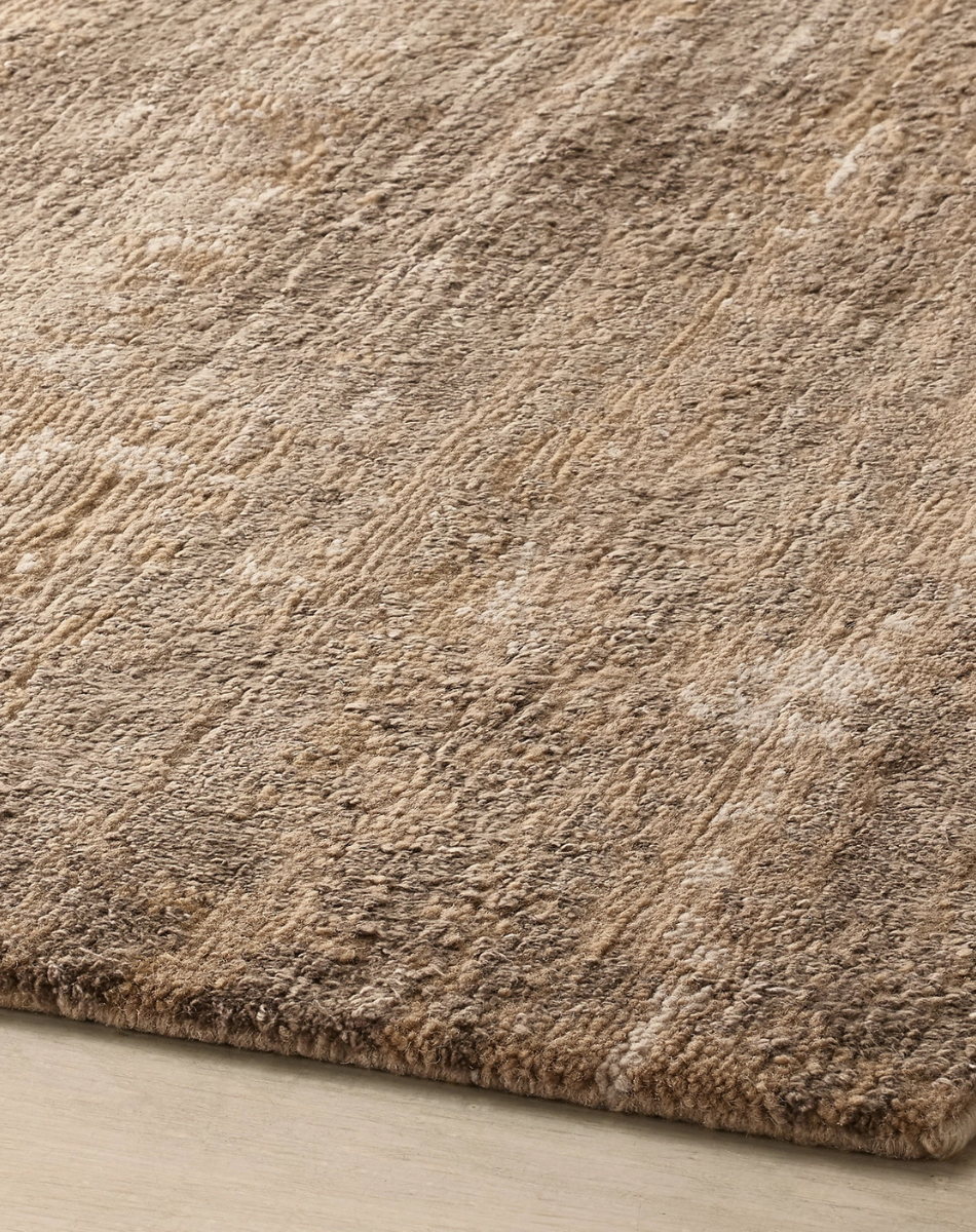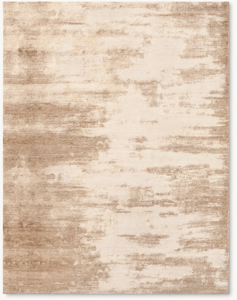Artfully knotted by hand from hand-spun wool and silk, Kasir conjures broad brushstrokes in tonal hues that are enhanced by the yarns' natural opacity and sheen. Organic textures ripple across the sheared pile, producing a textural surface with exceptionally lush softness.
