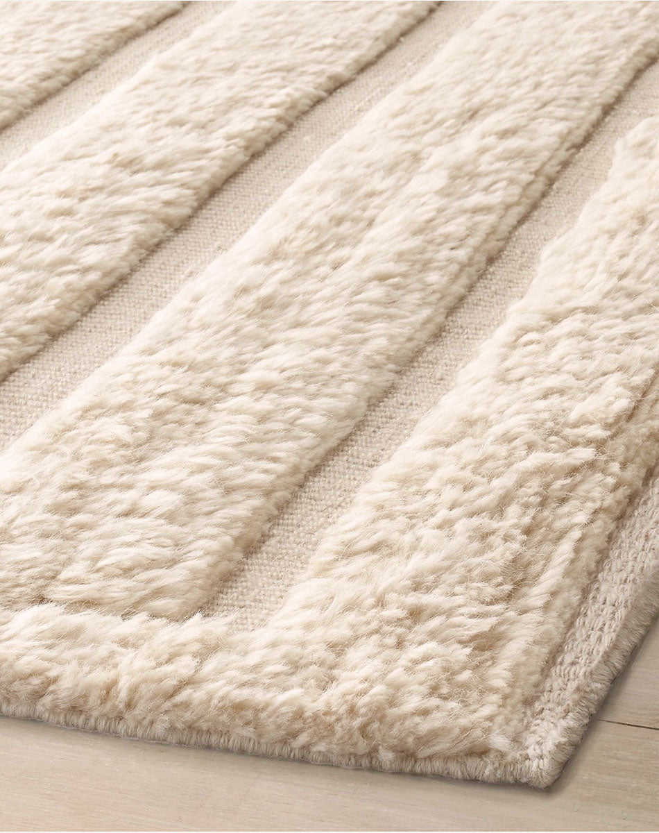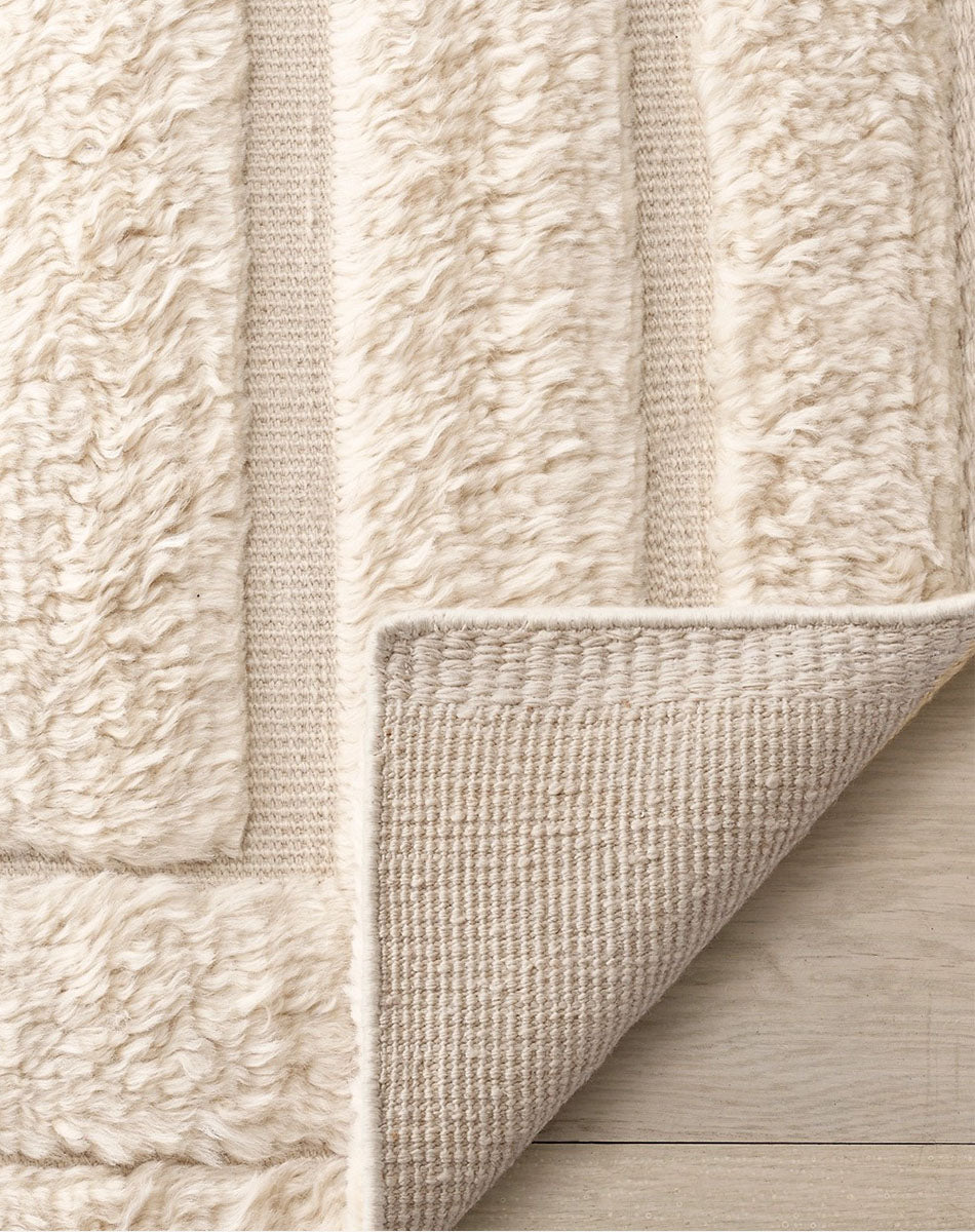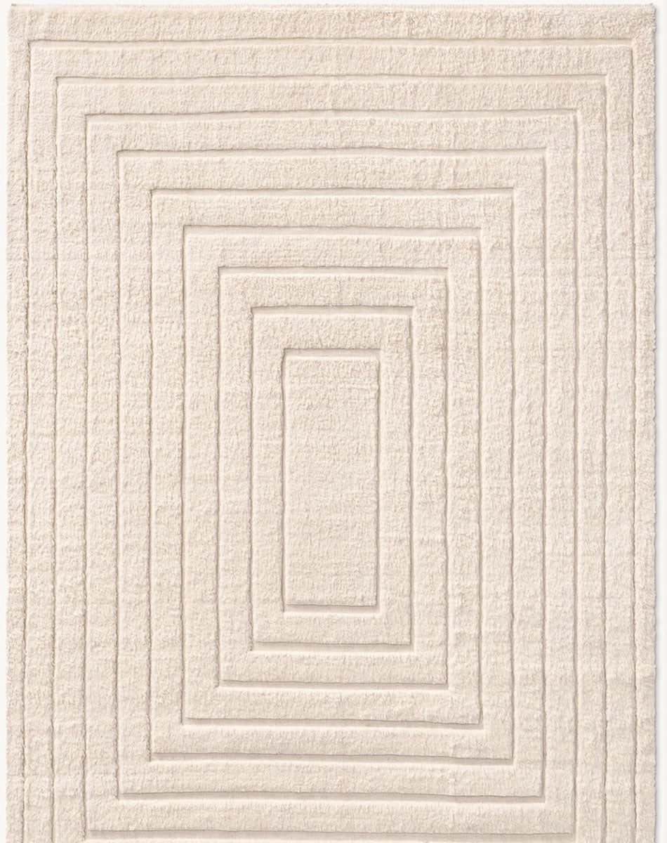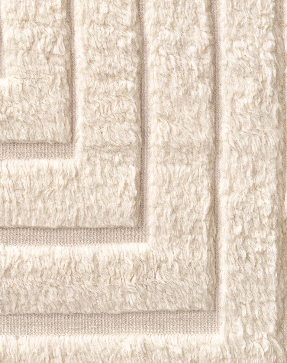 Raza's concentric rectangles reimage a traditional North African rug motif from a contemporary point of view. Hand-knotted from wool and sculpted with high-low dimension, the soft pile reflects the natural fibers' organic variation and nuanced shading.
