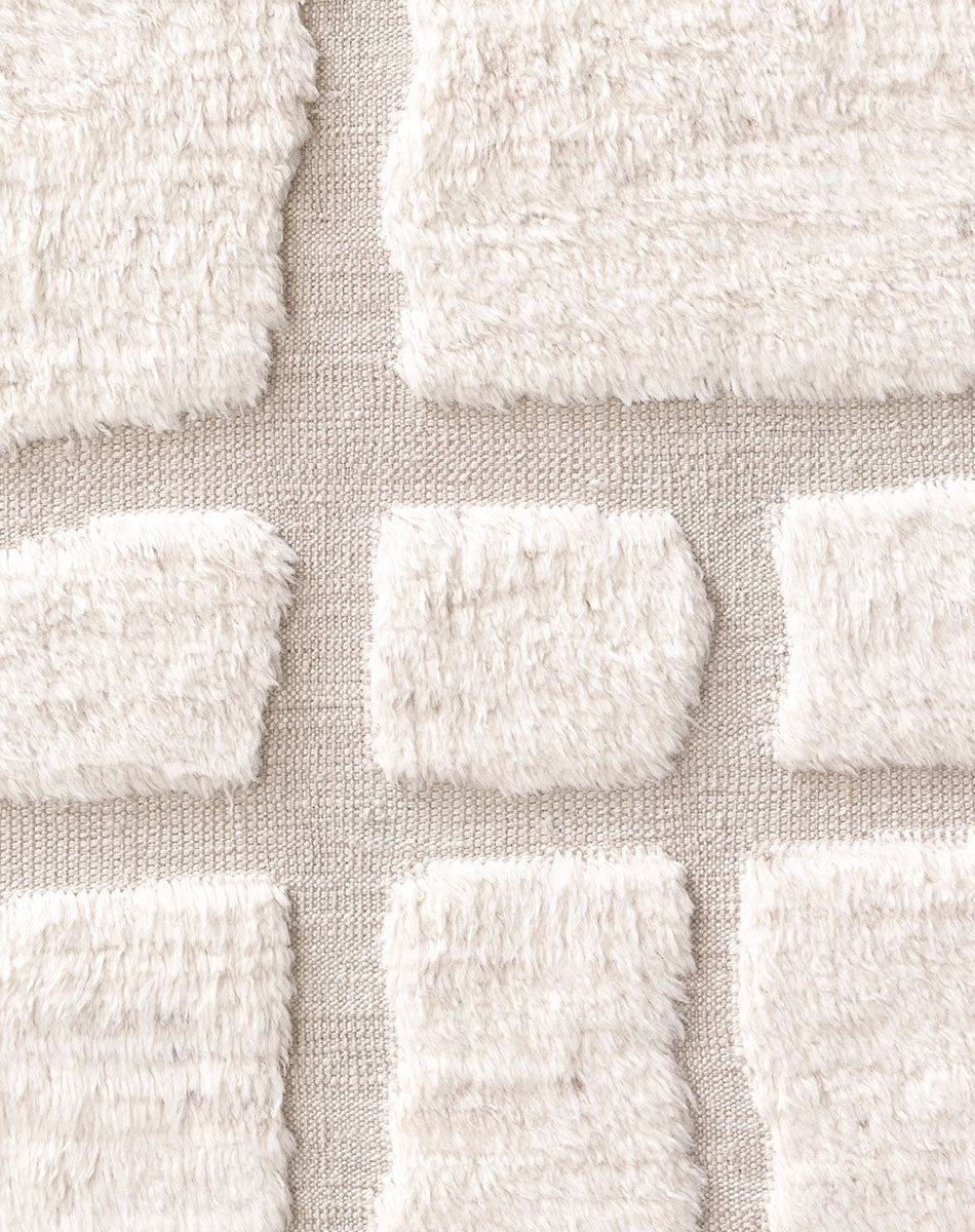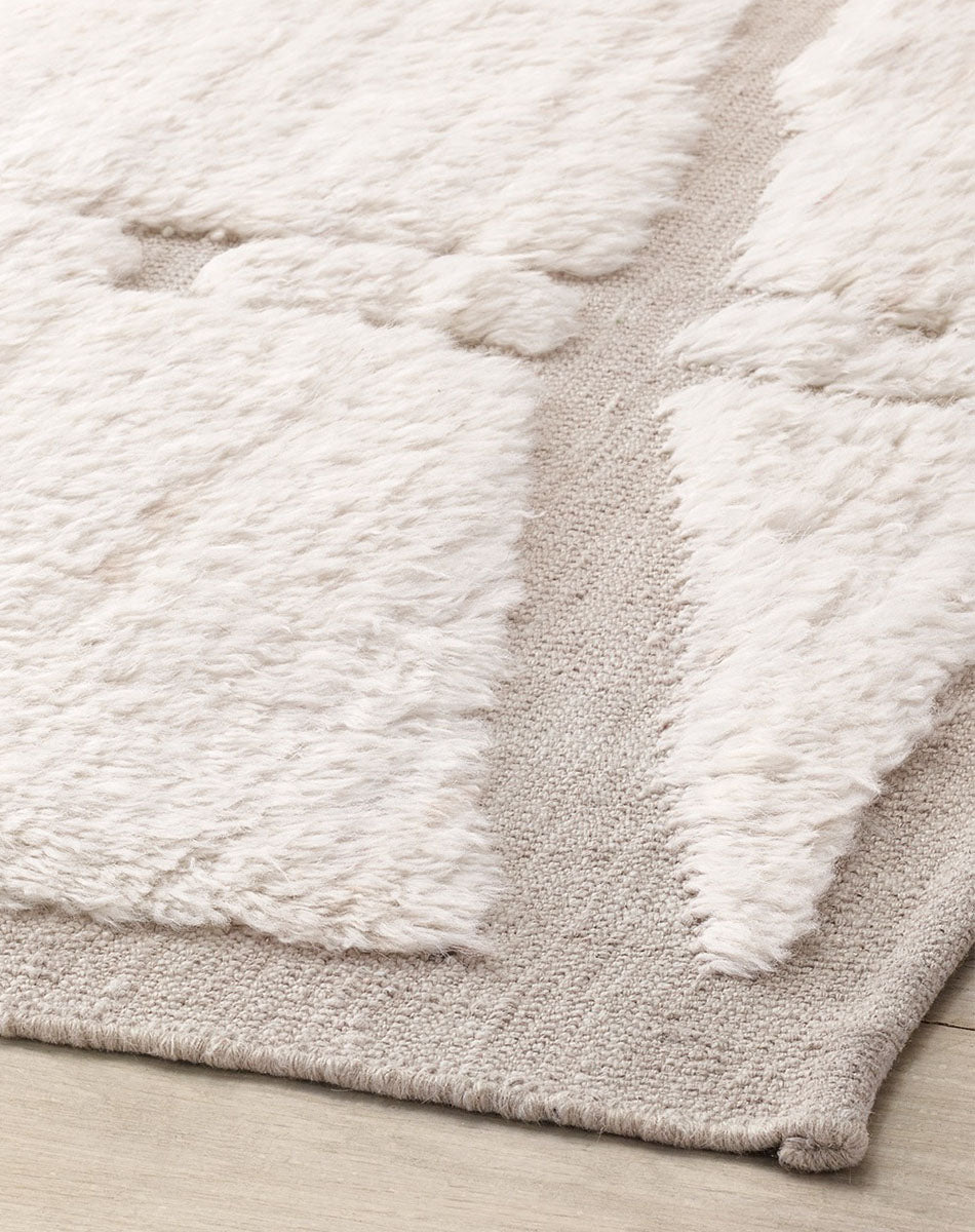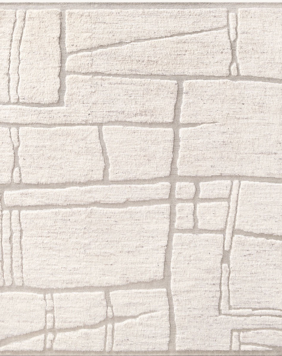 Aras's contemporary composition emerges from its luxe, sculpted pile. Hand knotted from natural wool, the spun fibers lend silken softness, subtle shading and refined texture to the rug's high-low finish.