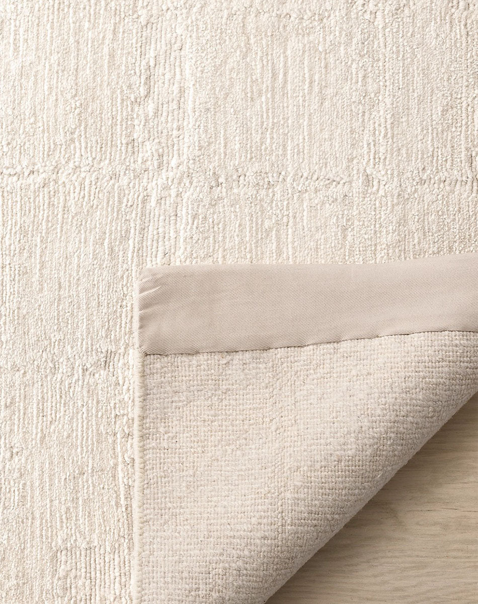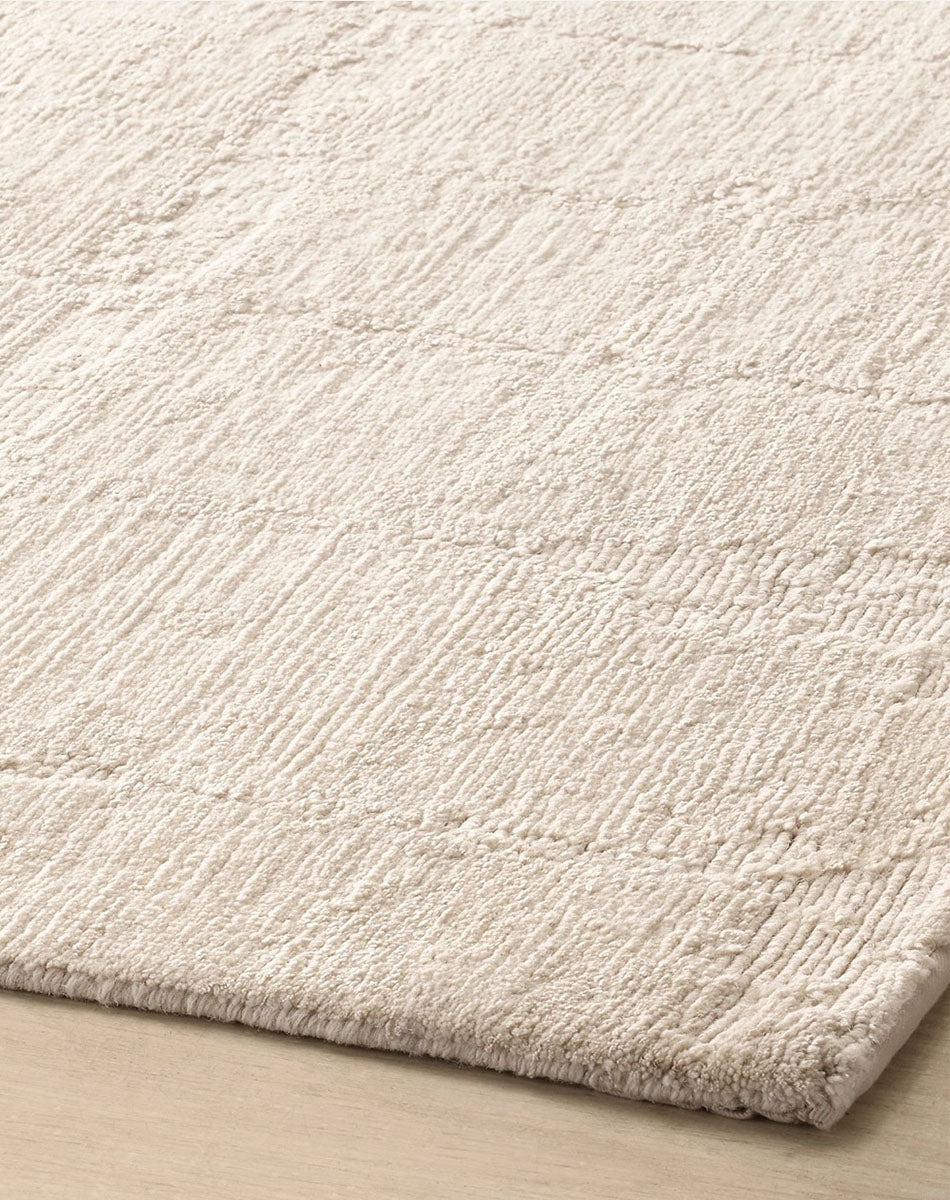 Lokesh evokes the nuanced beauty of shibori textiles in masterfully hand-knotted silk and wool, which respond to ambient light with a shifting patina of nuanced shading and luster. The yarns are spun by hand to enhance their softness and rich, textural character.